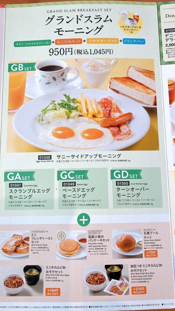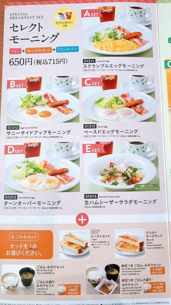 そしてデニーズのモーニングは平日、土日祝日も同じです。