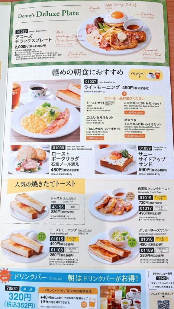 ファミレスのデニーズでも、お得なモーニングが食べられます!