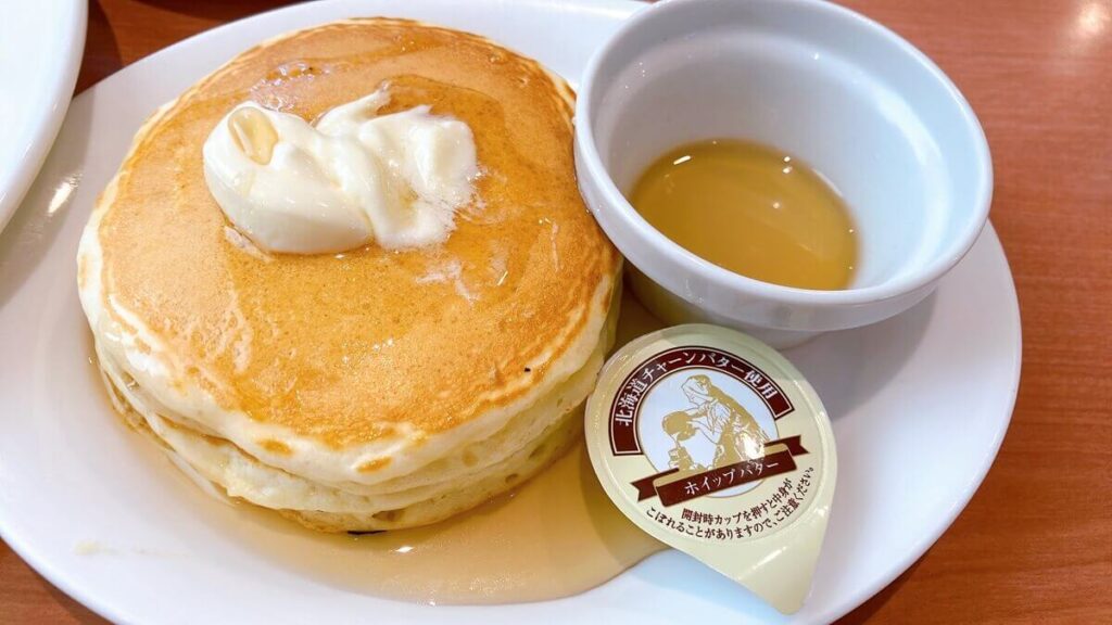 デニーズのパンケーキがおいしいと聞いたので、パンケーキが選べるメニューを注文。