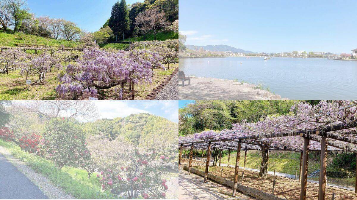 ライトアップや野外ステージなどのイベントもあり、GWごろには藤の花もピークを迎えます。