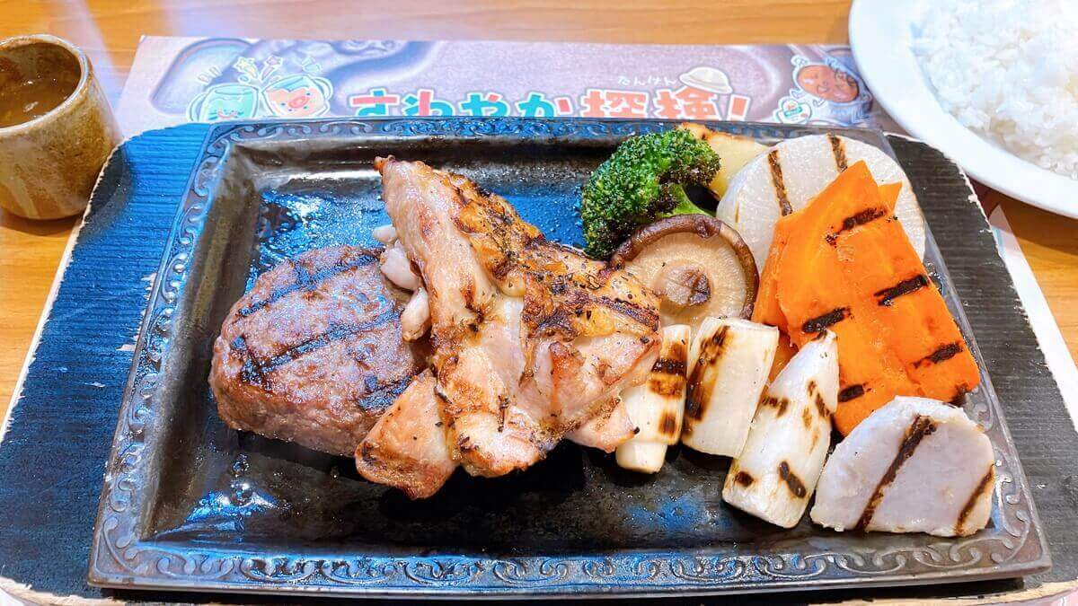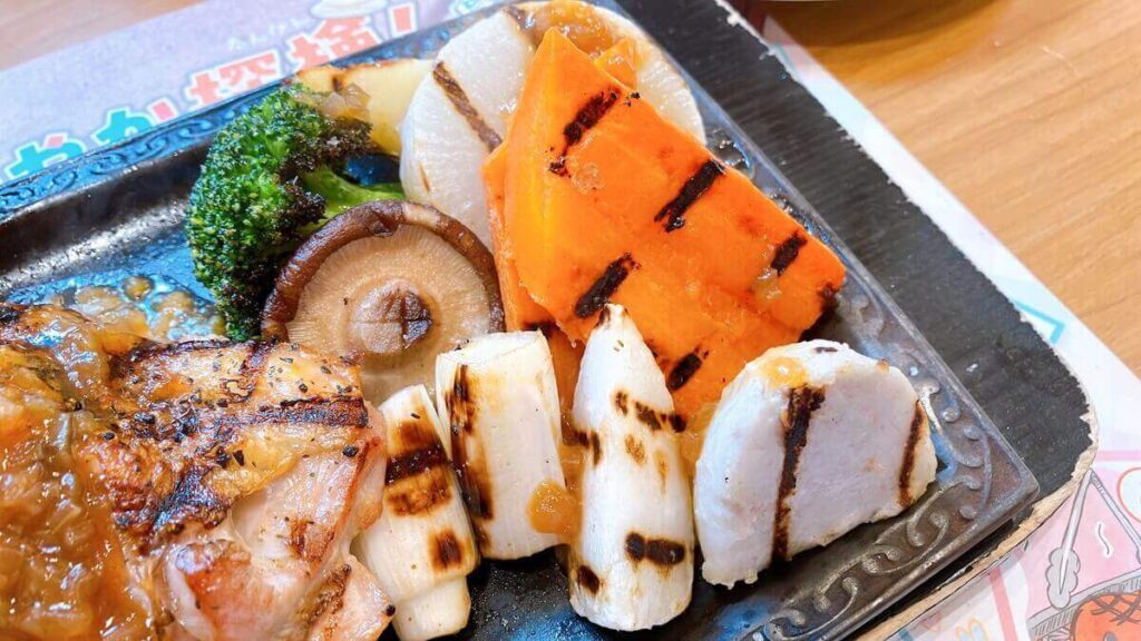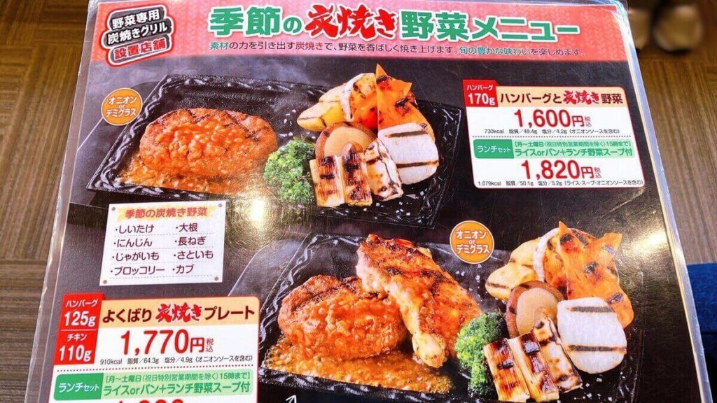 やっぱり「げんこつハンバーグ」も食べたい!という人は、「炭焼き野菜のみ」のメニューを2人でシェアするのもよさそうです。