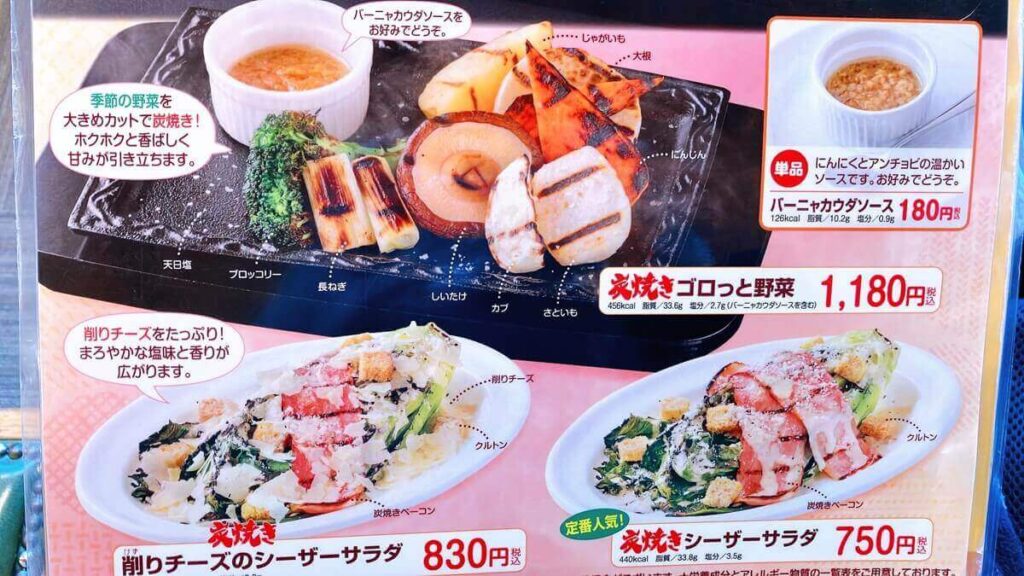 現在「炭焼き野菜」のある店舗が2店舗のみなので、ぜひ他の店舗でもお願いしたいです。