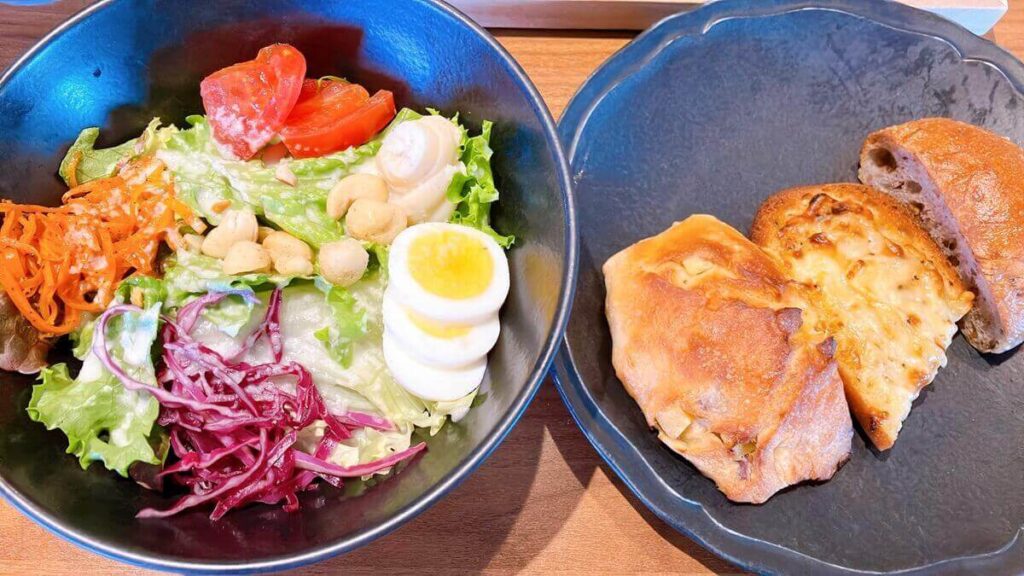 新鮮なサラダに、酸味のあるさわやかなドレッシングがよくあいモリモリ食べられます