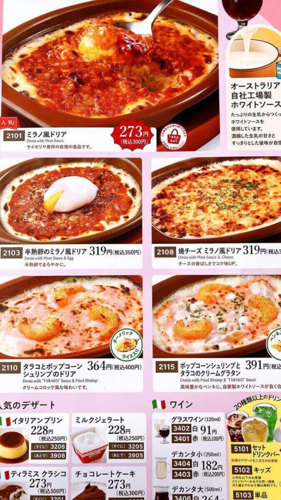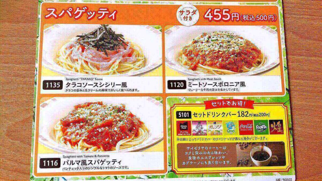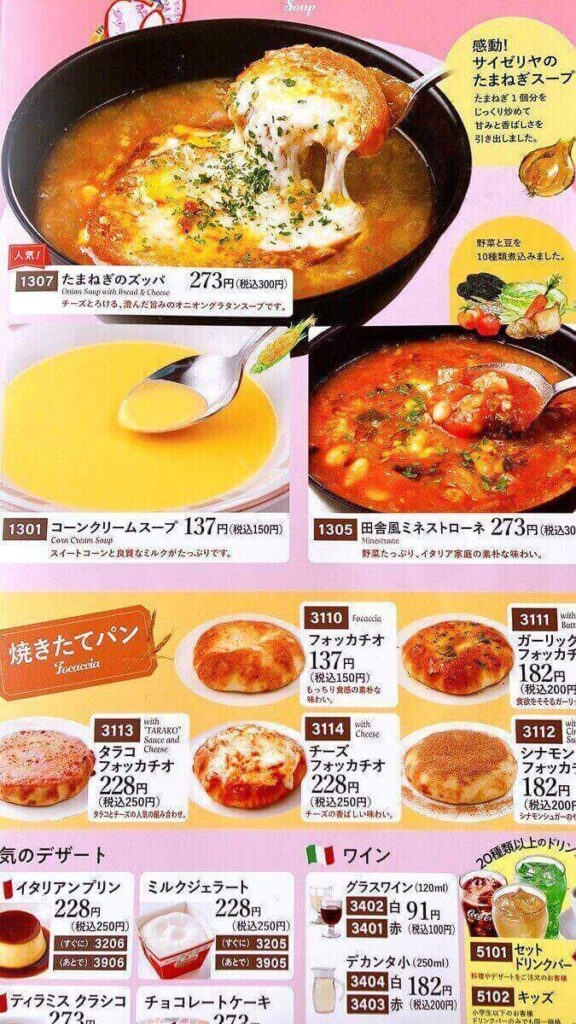 【サイゼリヤ】の通常メニュー